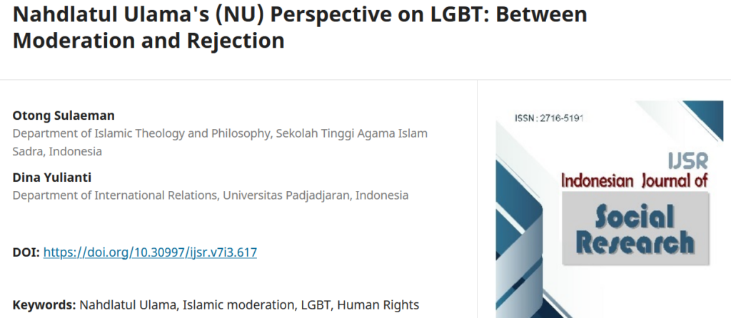 Nahdlatul Ulama’s (NU) Perspective on LGBT: Between Moderation and Rejection